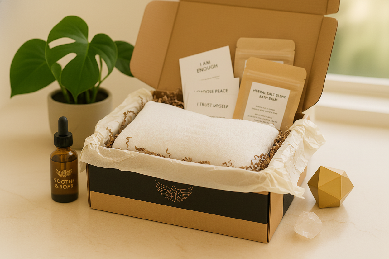 I created the Soothe & Soar Ritual Box for the woman who gives everything… except to herself. For the woman whose nervous system has carried too much for too long. For the woman who is finally ready to soften, to rest, and to return home to herself.